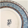 - Tile One: Traditional black-and-white sgraffito imagery